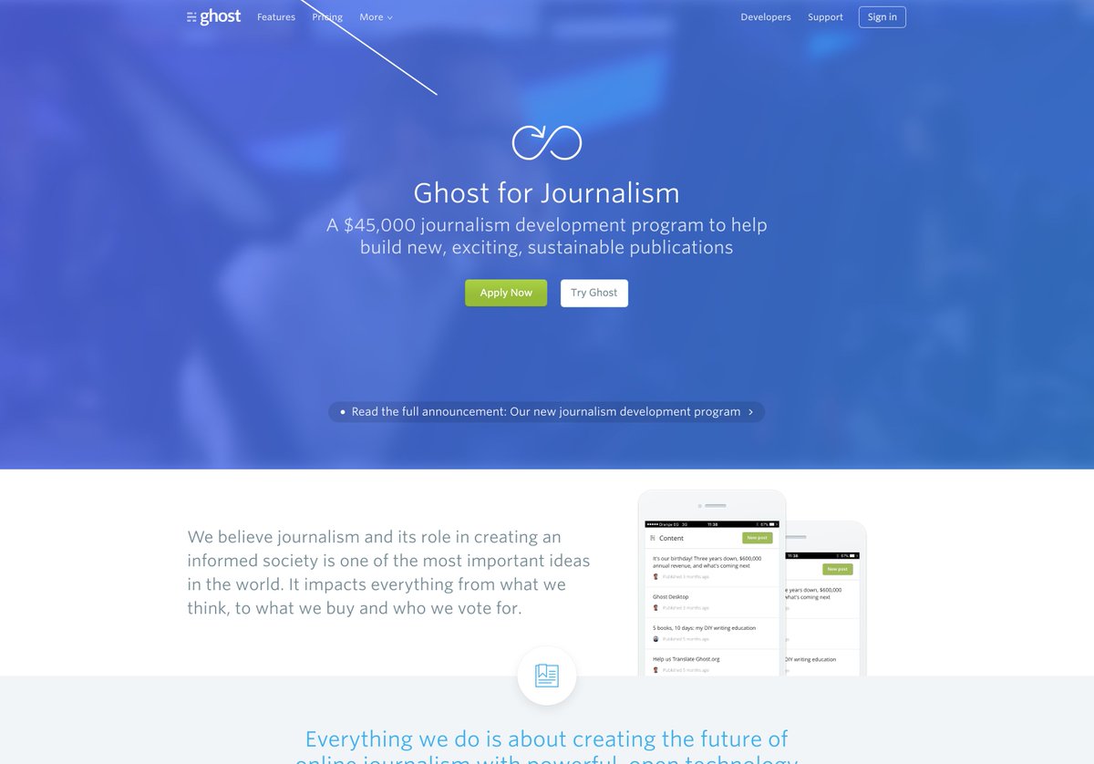 We’ve very excited to announce: Ghost for Journalism https://ghost.org/journalism/ – A $45,000 development program for independent publishers