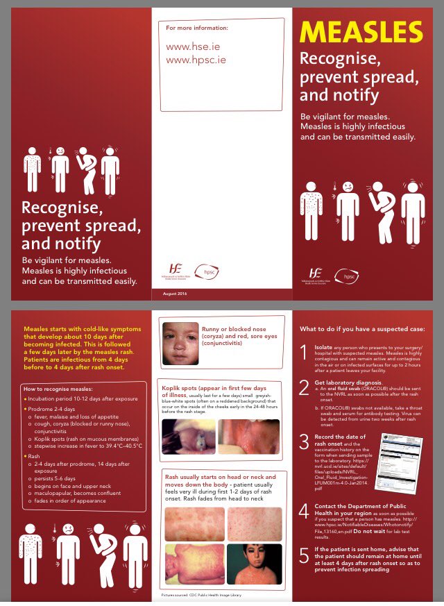 #Measles - recognise, prevent spread and notify http://www.hpsc.ie/a-z/vaccinepreventable/measles/factsheet/ …pic.twitter.com/54psNJsSg1