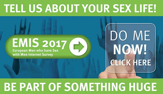 European Men who have Sex with Men Internet Survey, EMIS 2017 - complete, retweet, spread the word! http://bit.ly/2xoJy1V pic.twitter.com/EU6QndEDKi