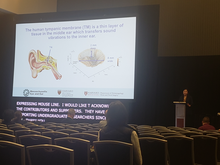 #aro2020, bioengineering concentrator Marta Pawluczuk, SB '22, presented research on acoustic testing of novel eardrum grafts.@AROMWMpic.twitter.com/qmBEf0p7x7