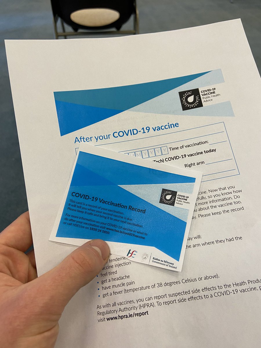 Received my first dose of the pfizer vaccine today in Tallaghthospital