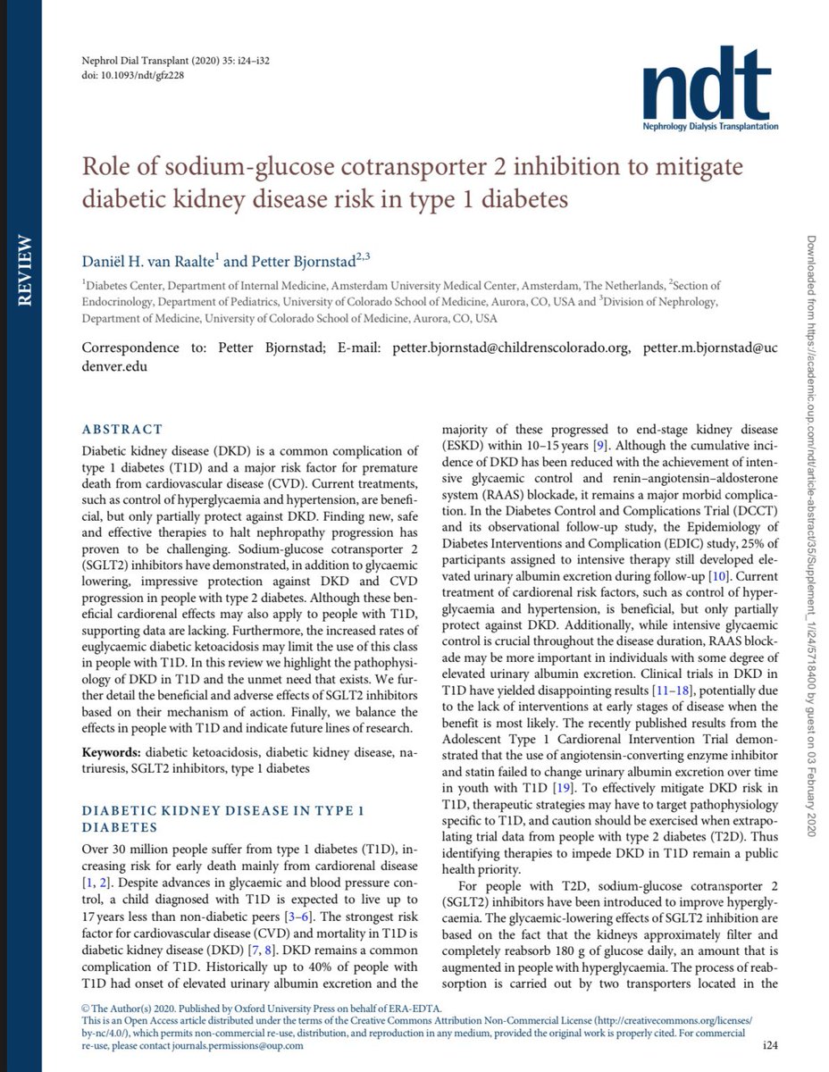 #openaccess#SGLT2 issue in@NDTsocial, edited by Hiddo Heerspink,@ChristophWanne4 &@denisfouque1 - thanks for this fantastic resource: - Renal physiology - Use in T1DM - Non-diabetic CKD - Cardiovascular outcomes - Current use & future direction https://academic.oup.com/ndt/ndt/issue/35/Supplement_1 … https://twitter.com/ndtsocial/status/1224619107032686592 …pic.twitter.com/MmnegwaCOn