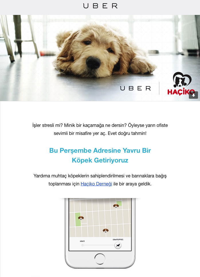 Son zamanlarda gördüğüm en güzel sosyal sorumluluk aktivitesi Uber patiler.