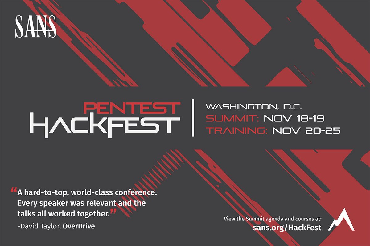 #SANSHackFest#HackFestSummit. Looking forward to seeing you there!pic.twitter.com/oZ0RVtOKn1