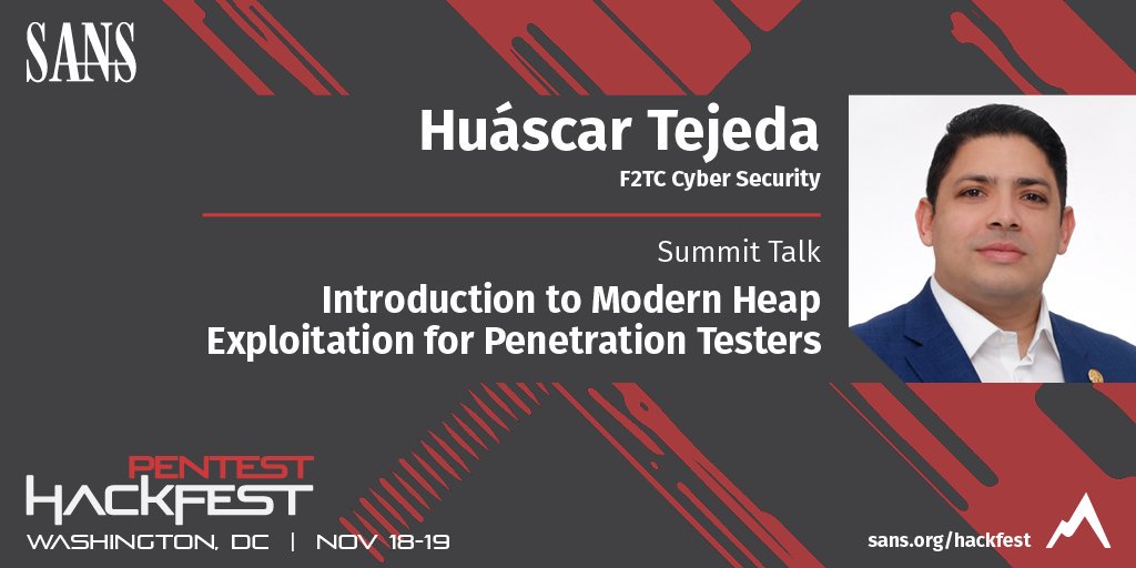 @htejeda is showing us how to take penetration testing engagements to the next level by harnessing the often unexplored advantages of heap exploitation.#SANSHackFest#pentestpic.twitter.com/mQlrGN1GDK