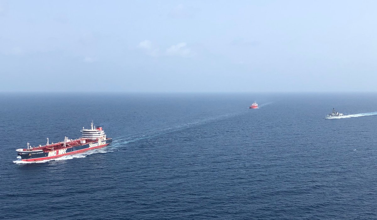BREAKING: @DefenceHQ have released footage of HMS Montrose accompanying the Stena Important and the Sea Ploeg vessels in the Strait of Hormuz. Presumably taken from Montrose's Wildcat?pic.twitter.com/pGlUhRFASs