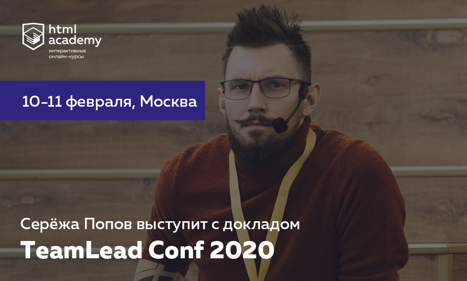 В Москве 10 и 11 февраля пройдёт TeamLead Conf — конференция для тимлидов — http://teamleadconf.ru/moscow/2020 Серёжа Попов выступит там с докладом «Как работать с джуниорами?»: какой выбрать подход и как вырастить крутого специалиста. Будете там — подходи знакомиться
