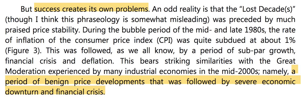 3/ "Success creates its own problems" - mused Shirakawa. "Success" here implies successful inflation targeting. He looks at Japan's Lost Decade(s) & economies in the 2000s as empirical evidence.pic.twitter.com/F6Z1vSQVoY