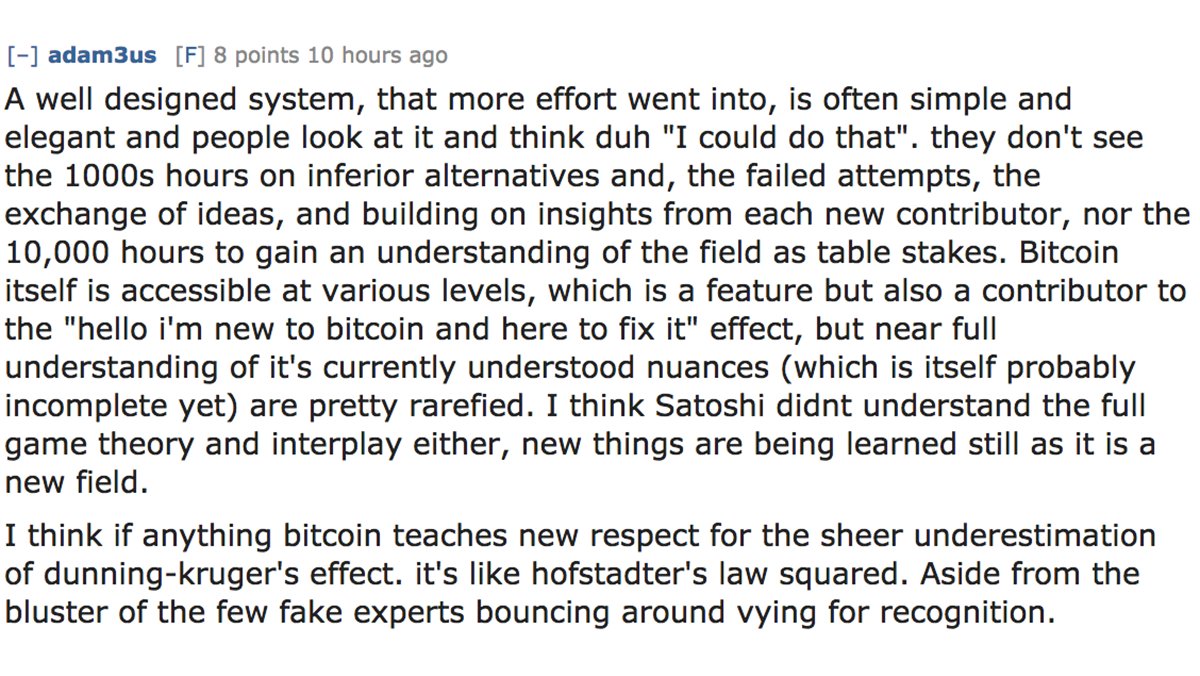 Interesting discussion about why top tier creative engineers are often seen as mere low status button pushers. https://www.reddit.com/r/Bitcoin/comments/7uax4x/schnorr_signatures_for_bitcoin_challenges_and/dtj0wus/?utm_content=permalink … pic.twitter.com/YF8MhHYFYx