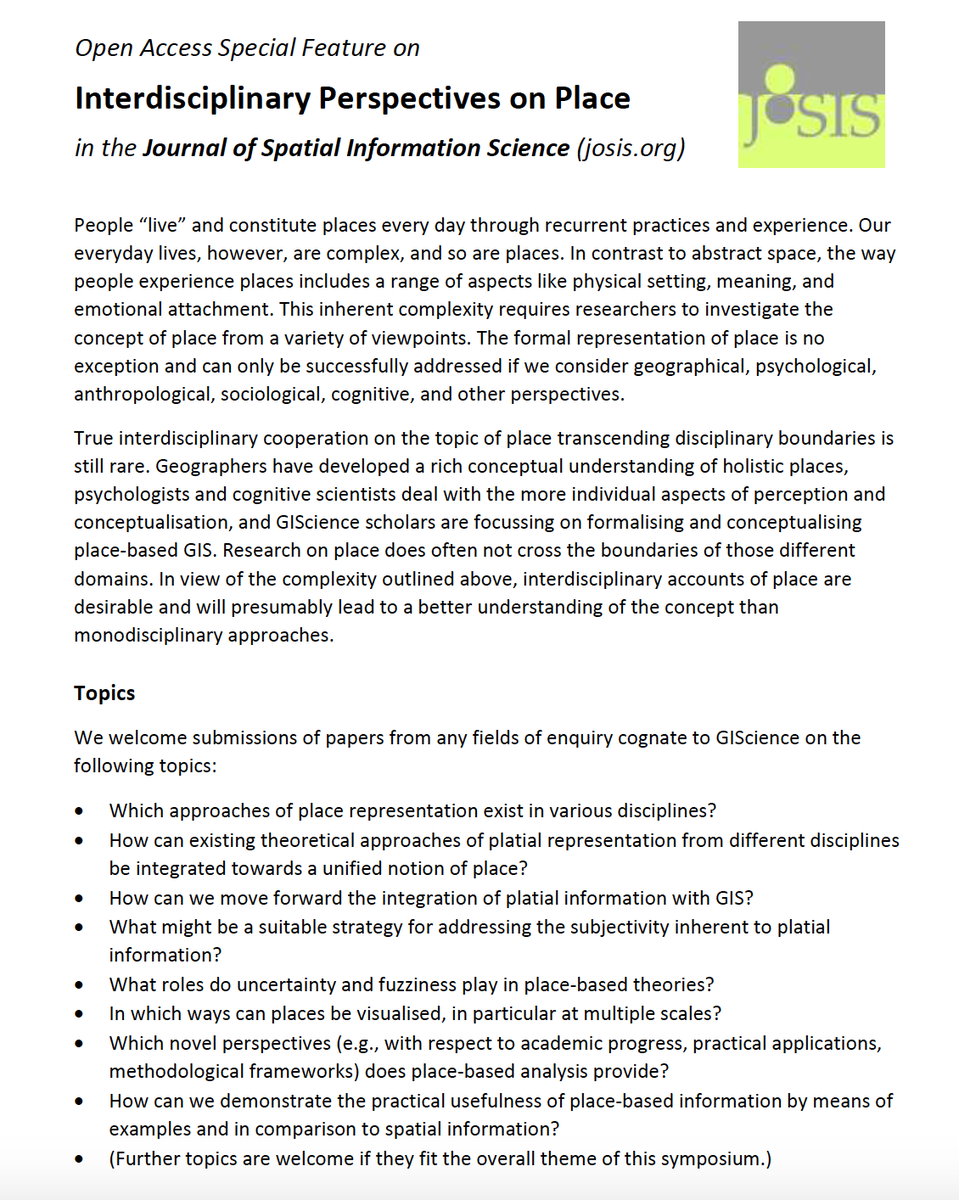Interested in publishing about how to represent or make sense of places? Join our Special Feature in