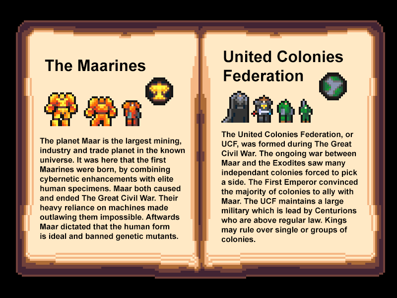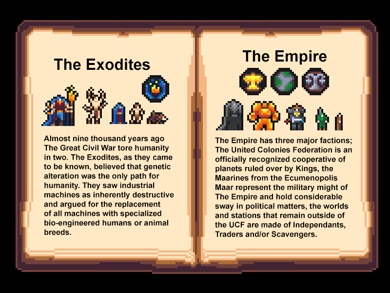 #lore from my#game. As per my namesake, I'll start with the four factions of#Humanity.#pixelart#indiegame#sciencefictionpic.twitter.com/t87yWlezjX