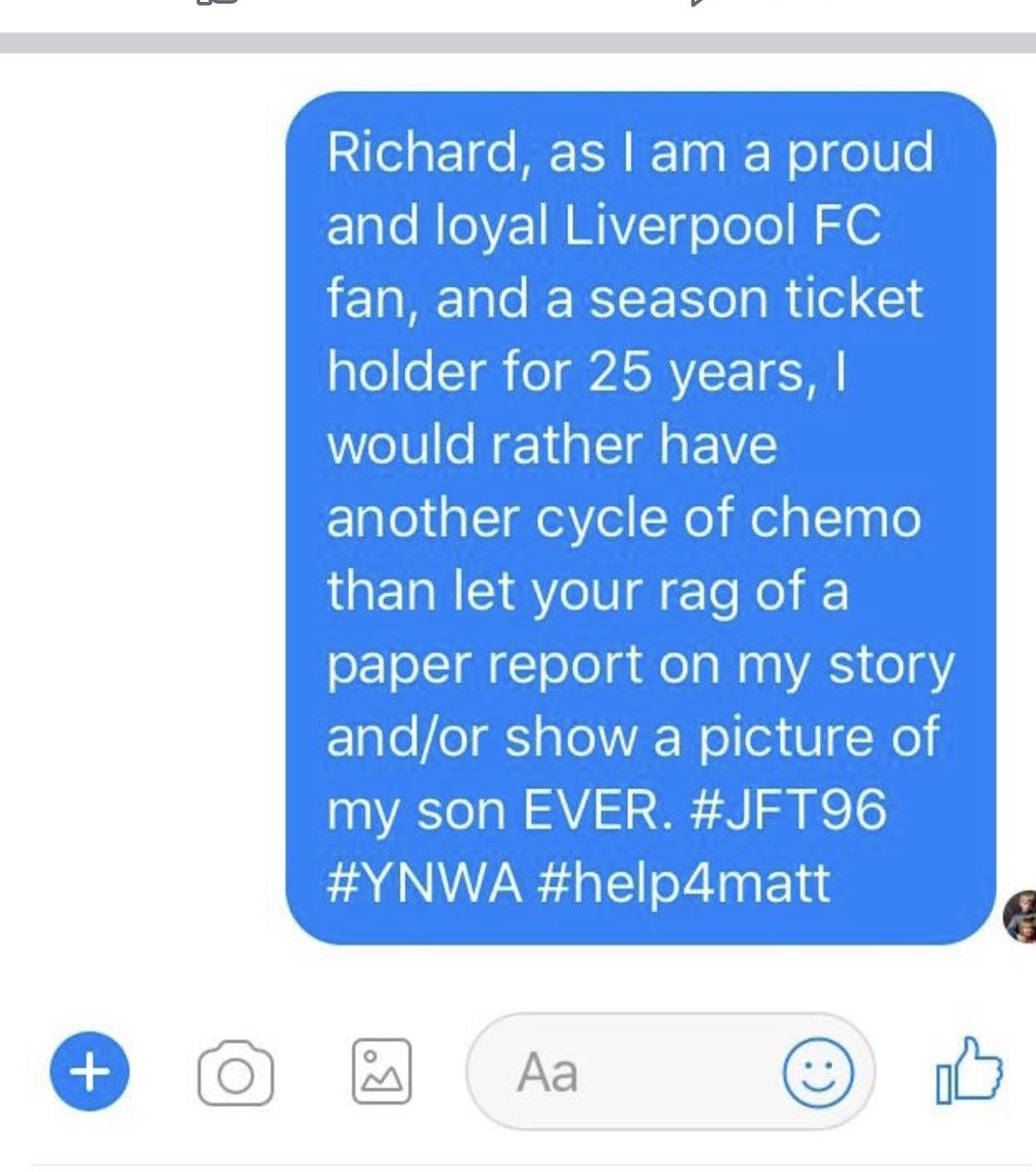 @matthenderson75 is trying to raise money for treatment overseas. The Sun wanted to write about it: 1. Look at his response 2. Please visit his page and give him the donation he deserves https://www.justgiving.com/crowdfunding/help4matt …pic.twitter.com/WoSQs4dhsh