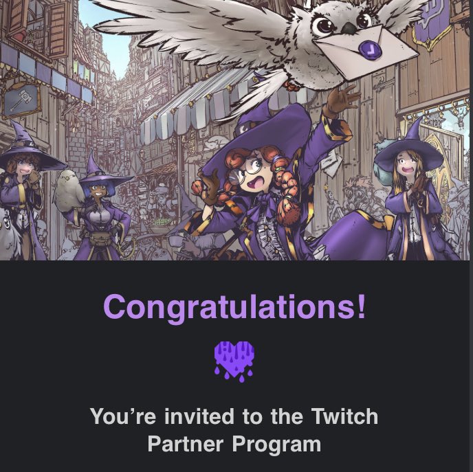 So I didn’t tell anyone I applied again for Partner because I didn’t want to jinx it, but. . . I’M NOW A TWITCH PARTNER! To those of you in my streams, thanks SO much for sticking with me and for making such a fun community