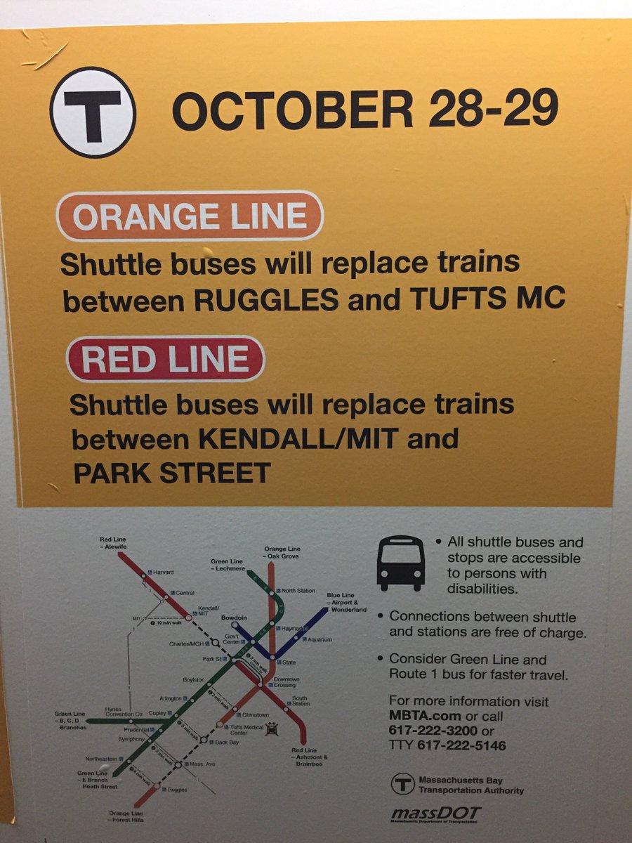 Good news: MBTA increasing capacity for multiple safety/reliability upgrades at once. Bad: both Orange and Red shuttles this weekend.pic.twitter.com/Qvyo40iNRm
