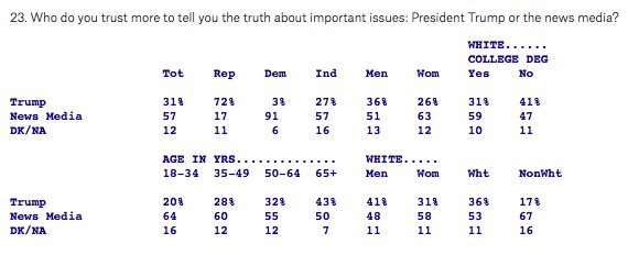 Quinnipiac poll found 57% trust the news media to tell them the truth about important issues and 31% trust Trumppic.twitter.com/H7VAx8xufC