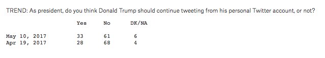 The percentage of voters who think Trump should tweet from his personal account has actually *increased*, from 28% in April to 33% nowpic.twitter.com/LS2MkD5Y3M