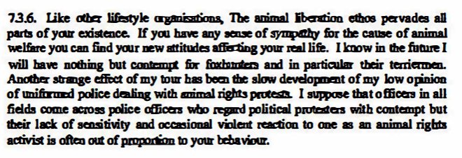 #spycops deployment ended. "I know that in the future I will have nothing but contempt for fox hunters & in particular their terriermen" - Special Demonstration Squad tradecraft manual, p37. https://www.ucpi.org.uk/wp-content/uploads/2018/03/20180319-TC-Documents_Final_Version.pdf …pic.twitter.com/dIVqekPhiW