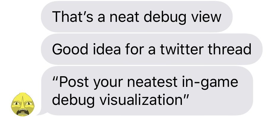A (too cool for twitter) friend asked for a thread on neat debug visualizations. Can we deliver? Contribute and RT please...pic.twitter.com/WstLtmARPE