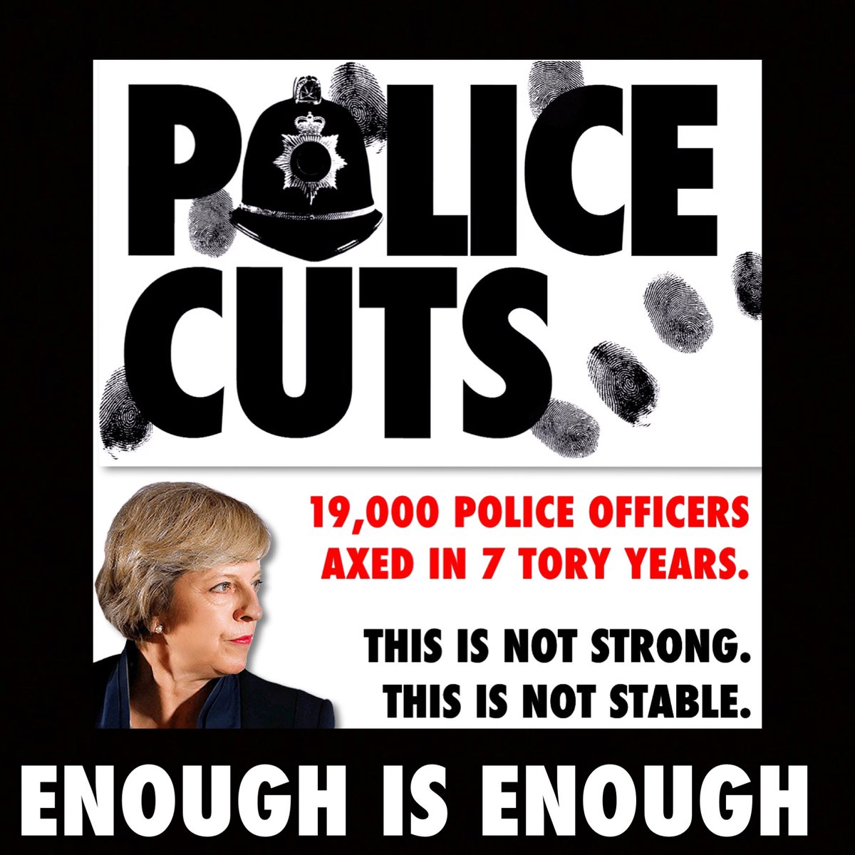 @theresa_may said#EnoughIsEnough and she's right. She's planning to sack another 16,000 officers if she wins.pic.twitter.com/shrIvvOBNh