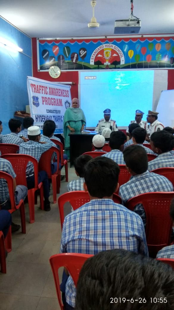 #HYDTPweBringAwareness Tr PS Bhadupura conducted traffic awareness program for school children in Standard High School at Khilwath road.@AddlCPTrHydpic.twitter.com/Hgu5akonjZ