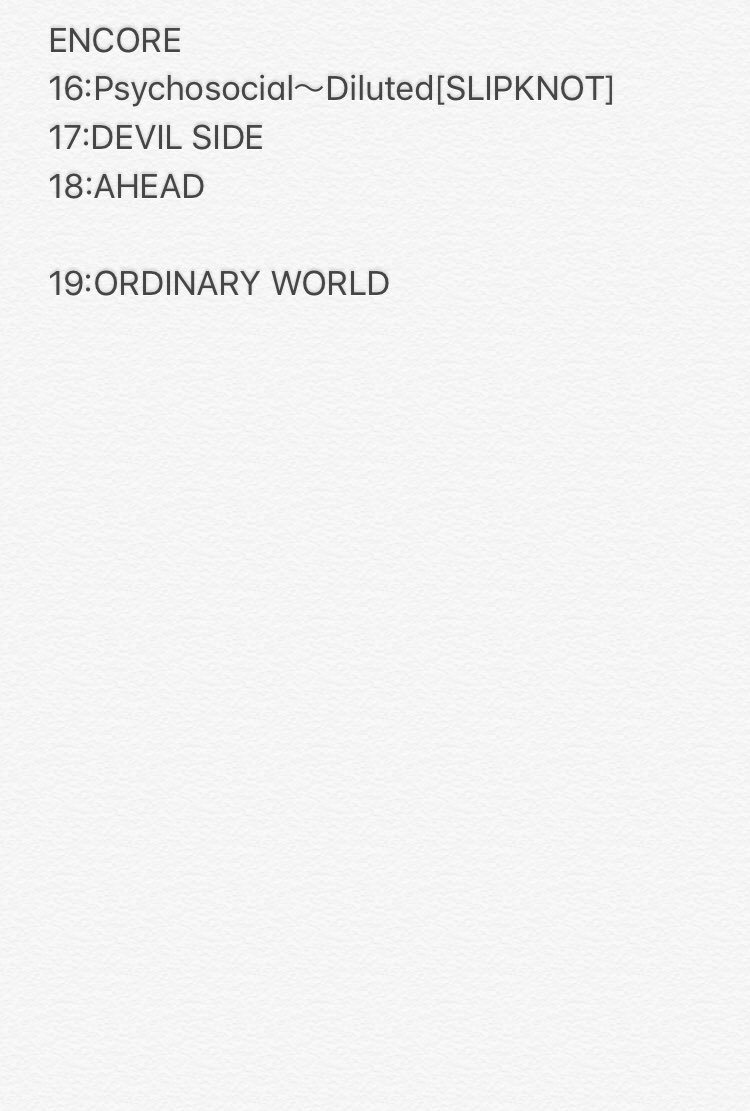セトリの曲名間違い。SLIPKNOTのカバーはDilutedではなくDualityでした。