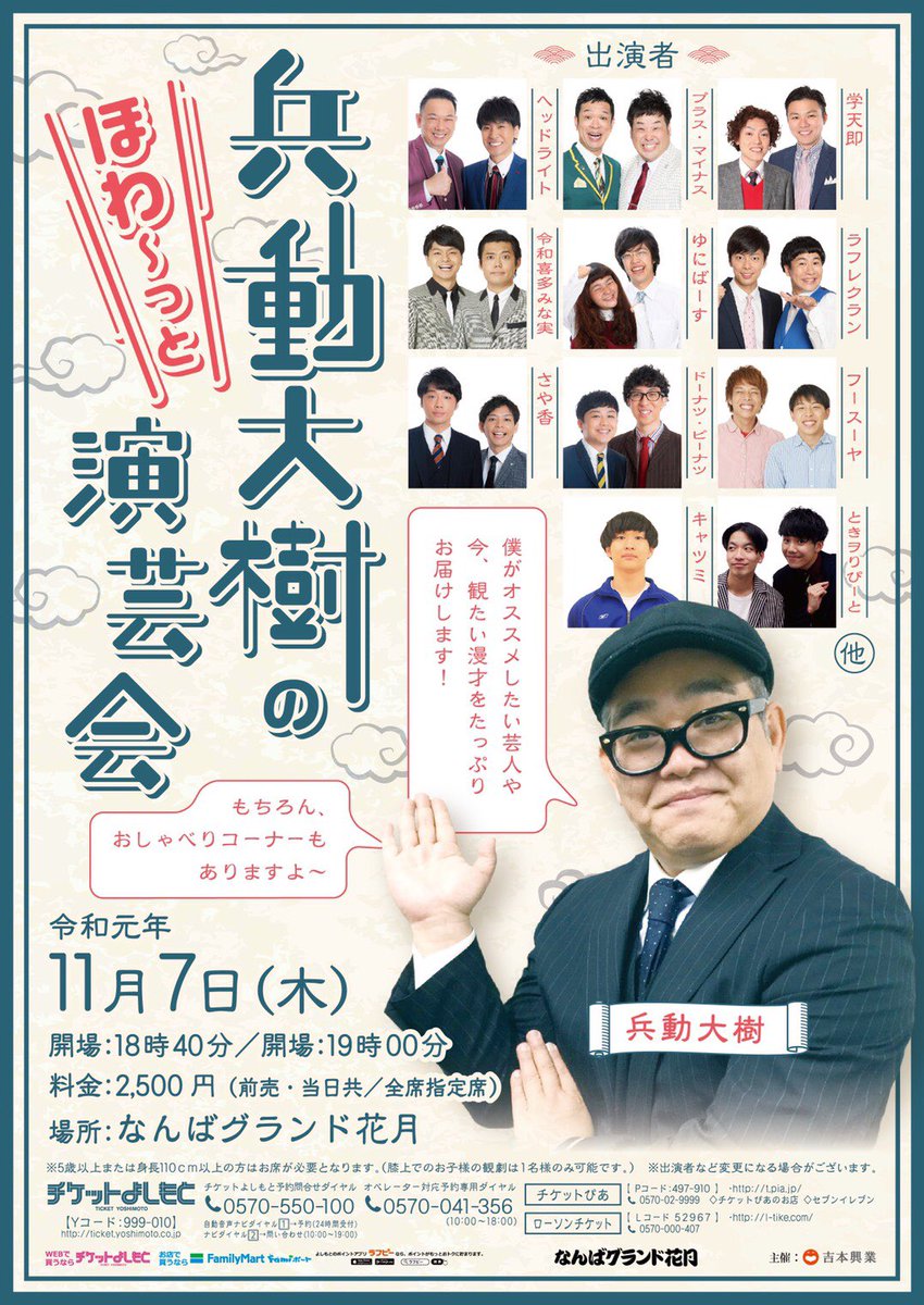 怪談終わって、次はこれ! よろしくお願い致します! 2019年11月07日(木) なんばグランド花月 開場:18:40 開演:19:00 料金:前売・当日共 ¥2,500(全席指定) チケットよしもと【Yコード:999010】 チケットぴあ【Pコード:497-910】 ローソンチケット【Lコード:52967】pic.twitter.com/738n359zT5