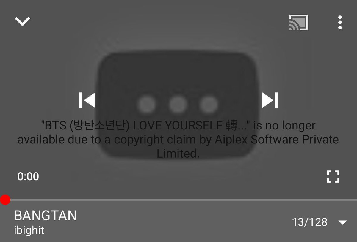 BTS Singularity official music video is deleted due to false copyright claims by Aiplex Software Private Limited.