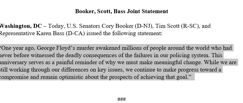 #policereform bill release statement ahead of the anniv of#GeorgeFloyd's death "While we are still working through our differences...we continue to make progress toward a compromise & remain optimistic"#NexstarDCpic.twitter.com/Iyec7YpMTC