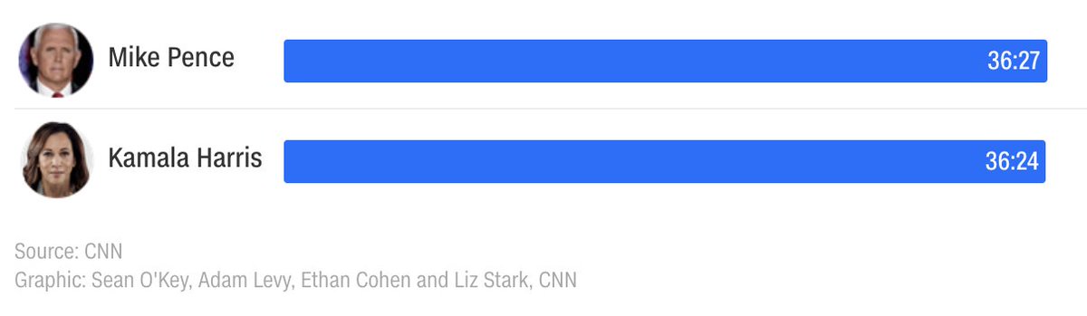 At the end of tonight’s debate, Vice President Mike Pence and Sen. Kamala Harris ended up with nearly the same amount of speaking time, differing by just a few seconds. via