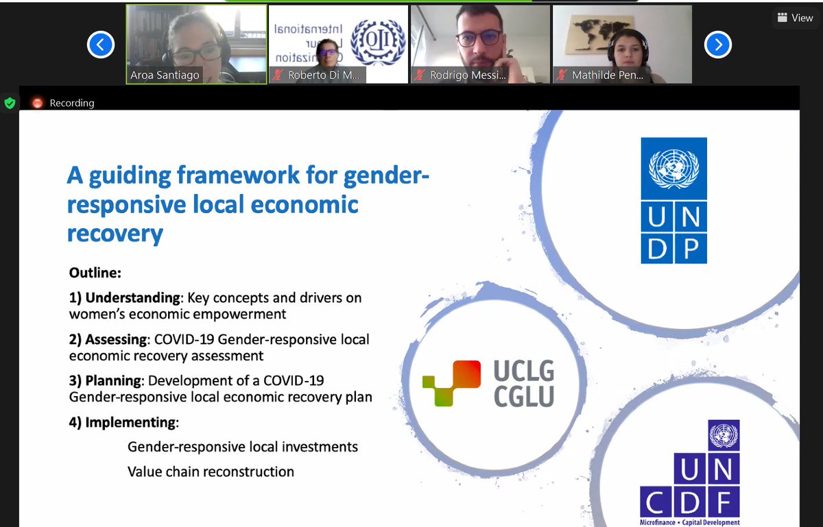 "In facing #COVID19, we need to benefit both women and men. As the technical leader of the socio-economic response,@UNDP has contributed, together w/@UCLG &@UNCDF to develop a framework for gender-responsive local#economicrecovery". Aroa Santiago@UNDP at#UCLGMeets.pic.twitter.com/jVkYMHzV2P
