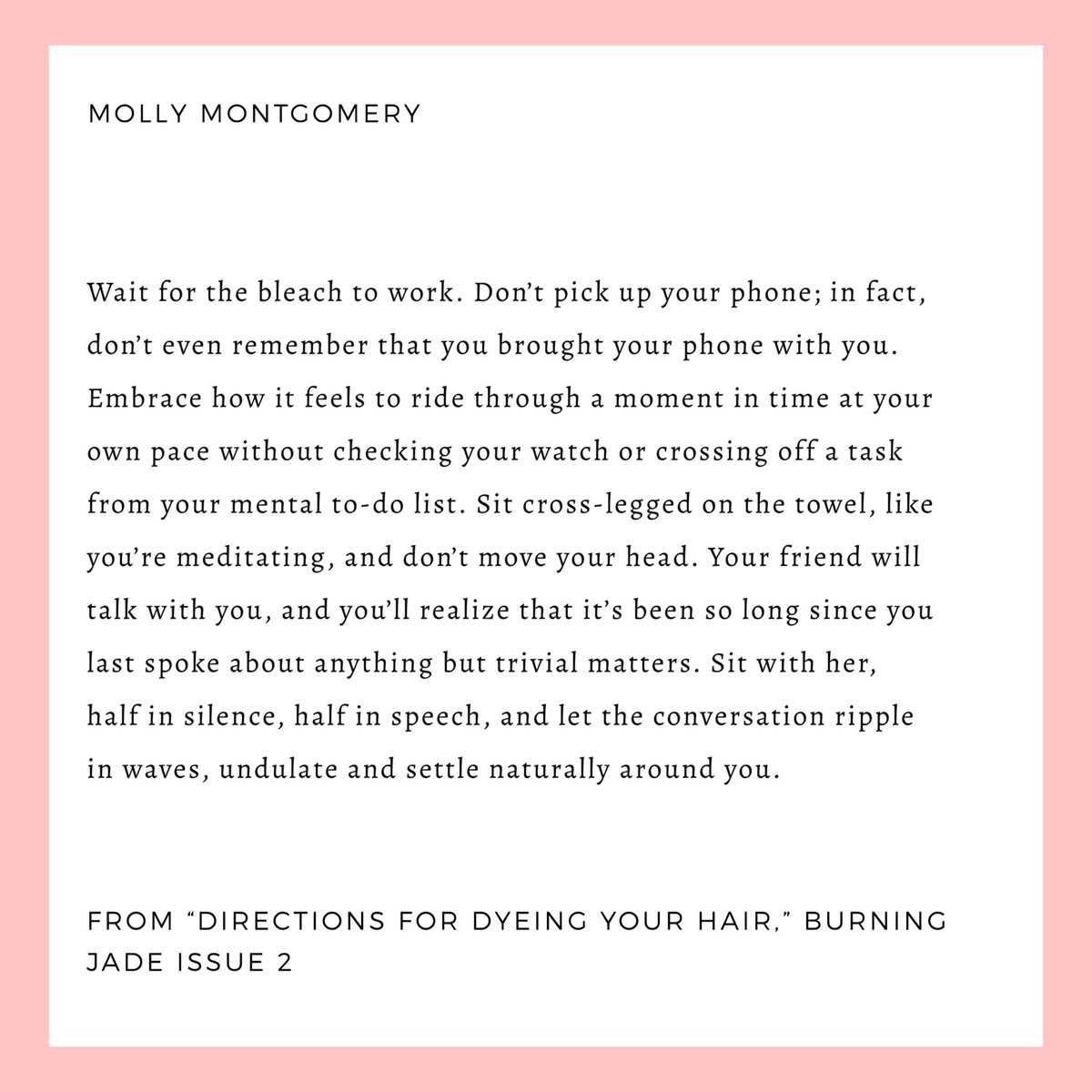 Read Molly Montgomery’s nonfiction piece, “Directions for Dyeing Your Hair,” at the link in our bio!pic.twitter.com/zkAuoys7sF