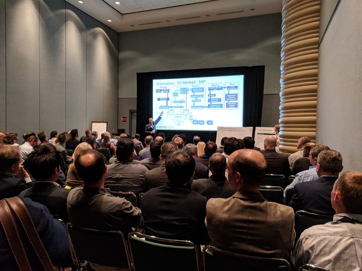Standing room only at #IBM and #ToyotaCanada's interactive session at #SAPPHIRENOW + #ASUG2018! Speakers are presenting their lessons learned through user stories. http://ibm.biz/SAPPHIRE2018 pic.twitter.com/PzdwFm961Q