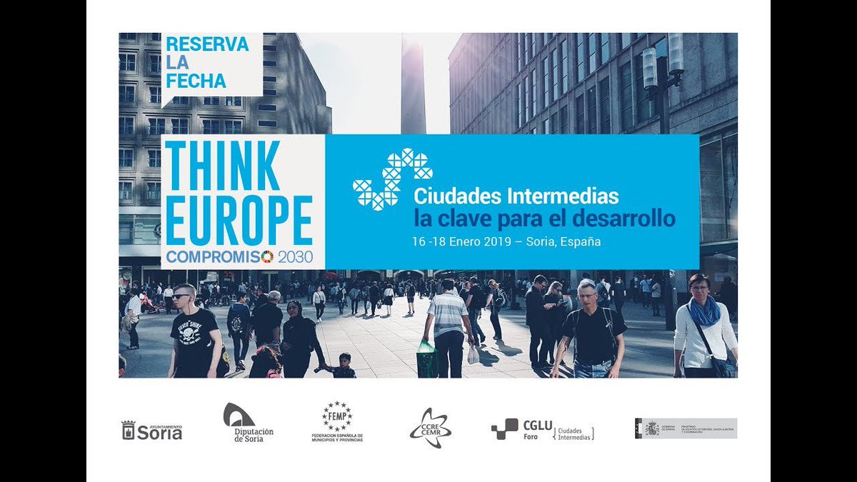 Representantes de la @CONGDRMurcia participarán en el Congreso Internacional #ThinkEurope #Compromiso2030 que se celebra en #Soria, y que arranca en breves, donde se abordará el papel de las ciudades intermedias en la implementación de la #Agenda2030.