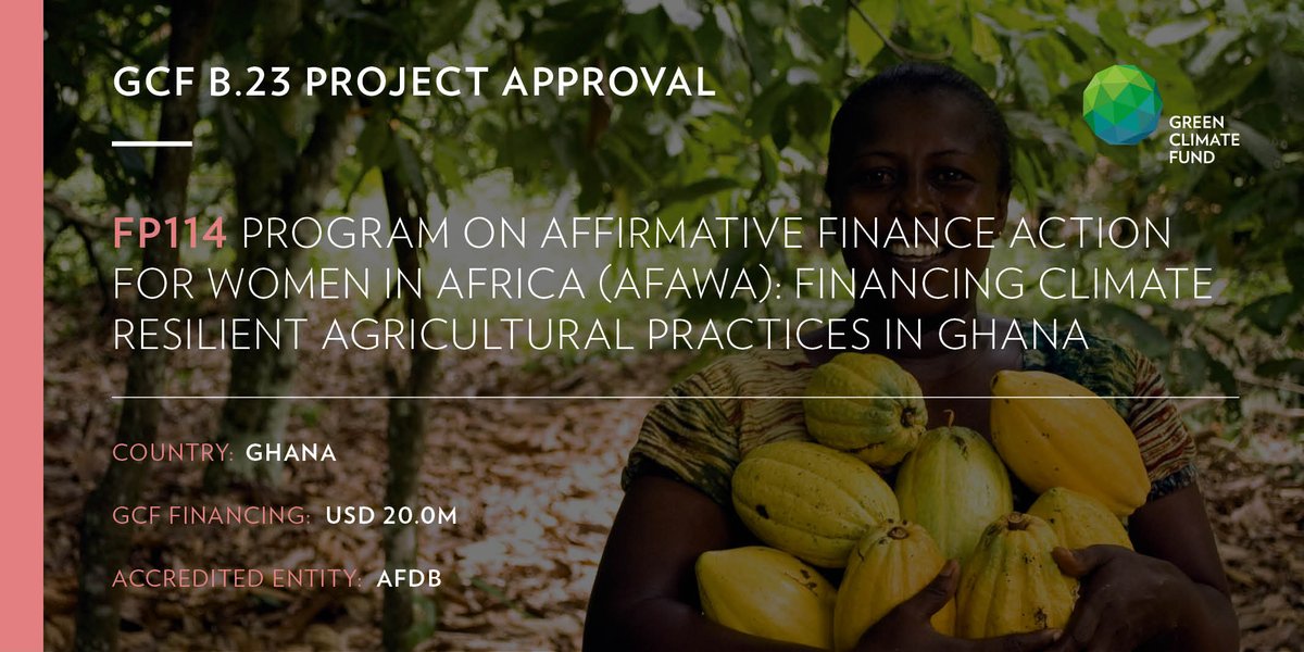 GCF Board #GCFB23 approved project FP114 with @AfDB_Group to improve #women-led #MSMEs and #farmer-based associations' access to finance in order to engage in low-emissions and climate-resilient agricultural practices in #Ghana.