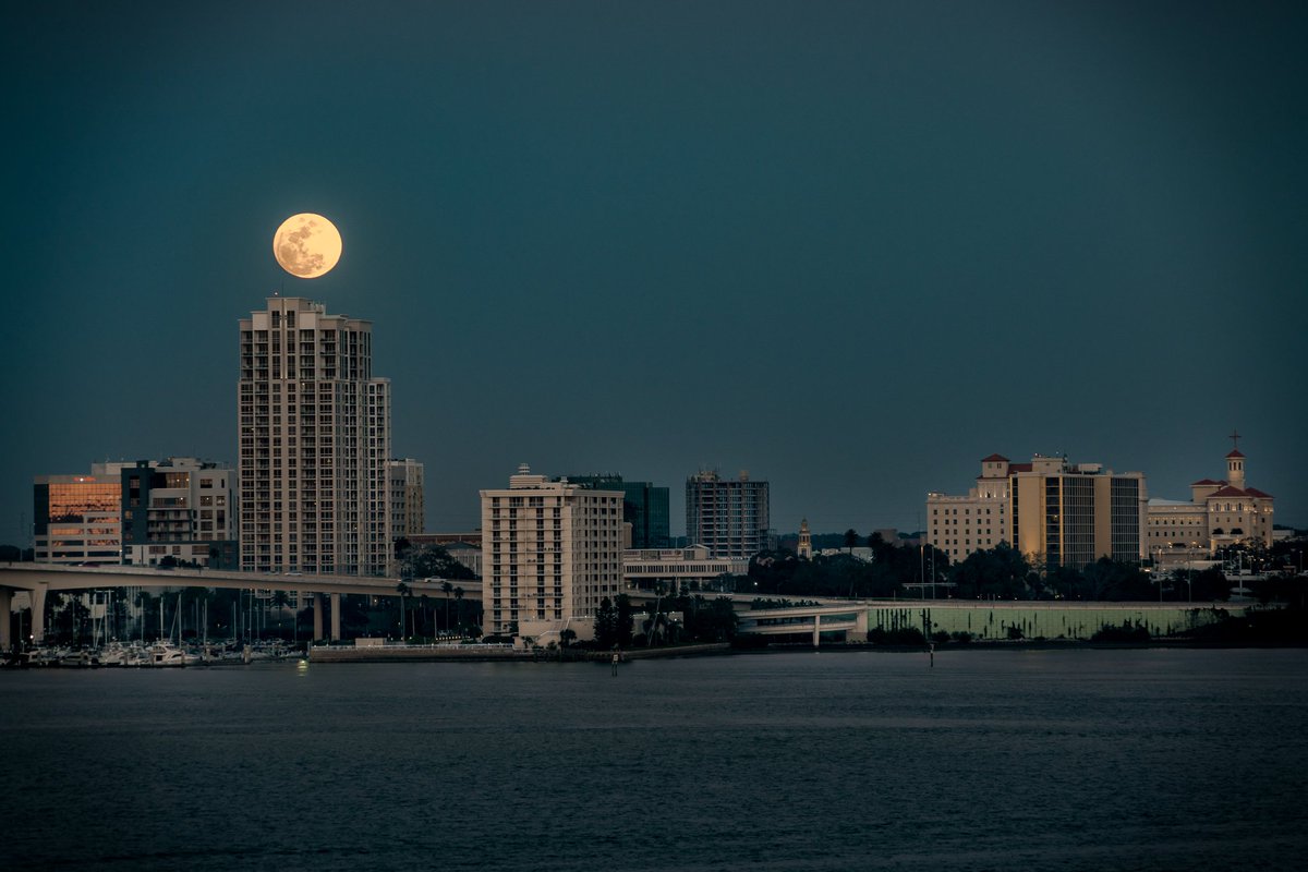 #SnowMoon over Downtown Clearwater, FL. #FullMoonFriday #flwx @StormHourpic.twitter.com/thbgYXCQST