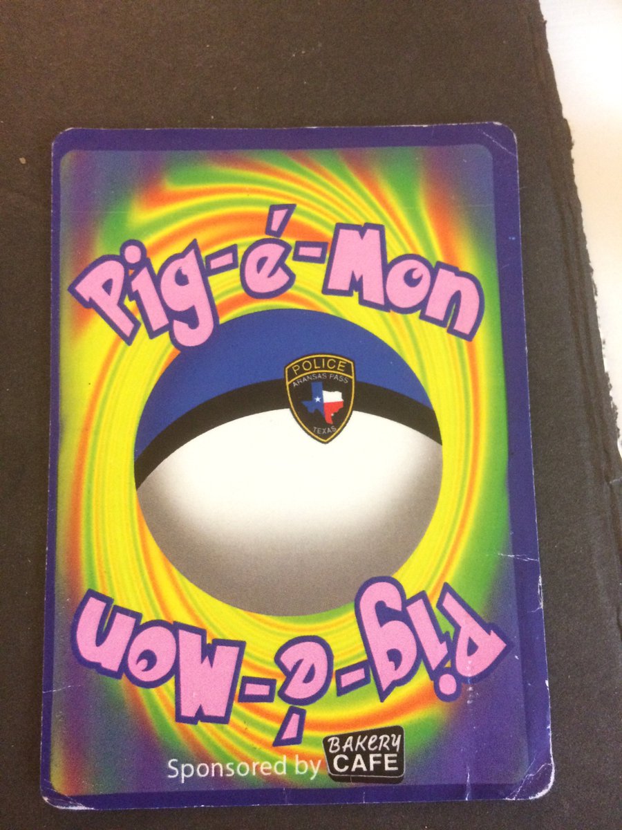 Follow me on this: These are Pokemon-style TRADING CARDS that feature police officers from Aransas County, Texas.
