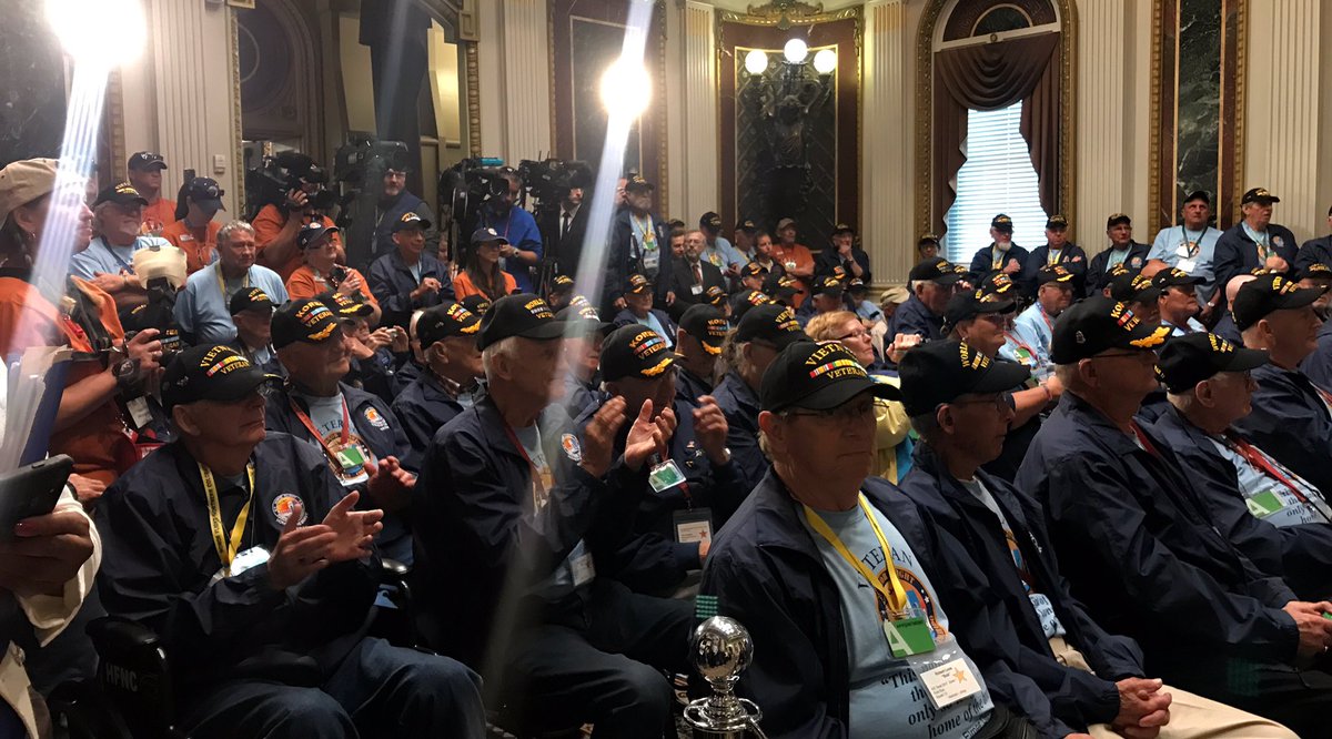 It's Nat'l Military Appreciation Month. Packed house of WWII, Korea & Vietnam vets w/Honor Flight to meet @VP. Thank you for your service.pic.twitter.com/3c6En1MV4t