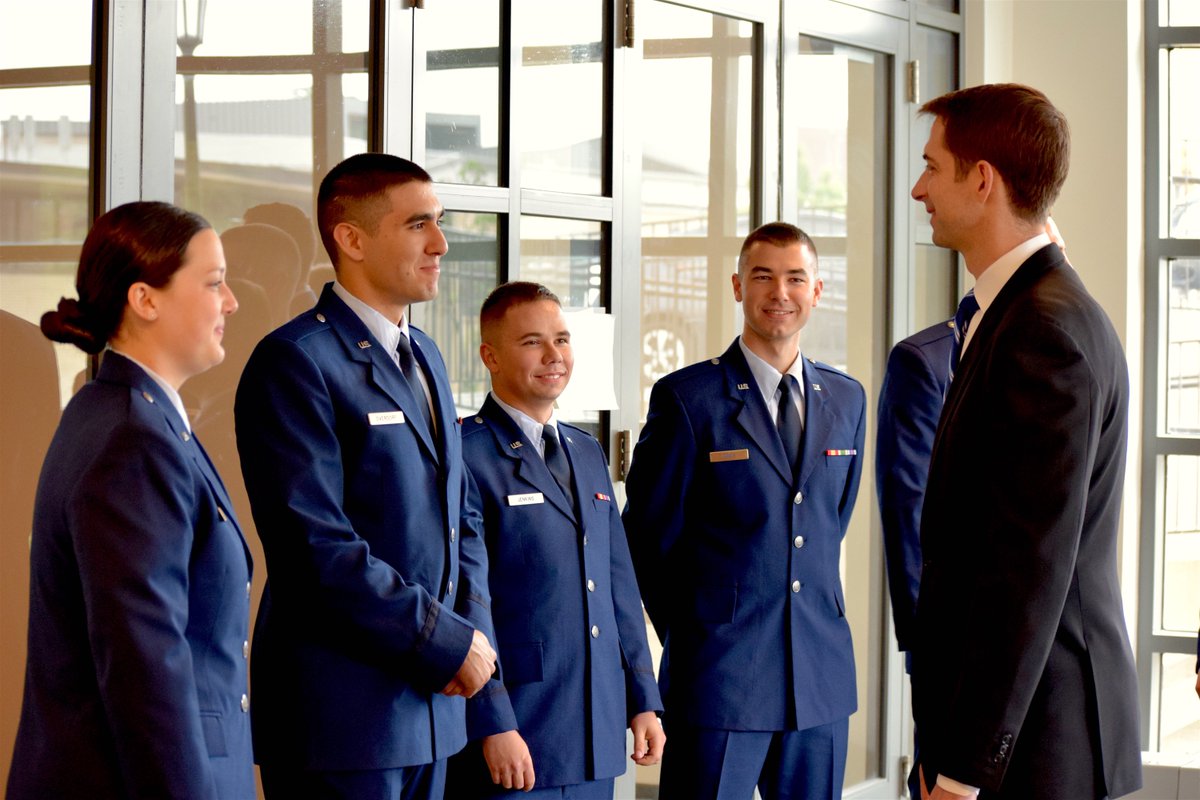 I was honored to be at @UArkansas today as nine graduating ROTC cadets accepted their commissions as second lieutenants in the Air Force.pic.twitter.com/AXqG8F15ow