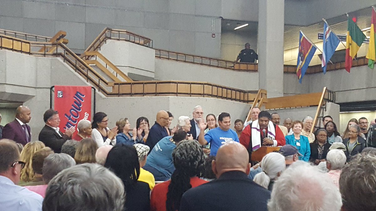 Religious and community leaders come together at #Detroit #poorpeoplescampaign against racism, poverty and the otherization of human beings.pic.twitter.com/ozgDSvJunv