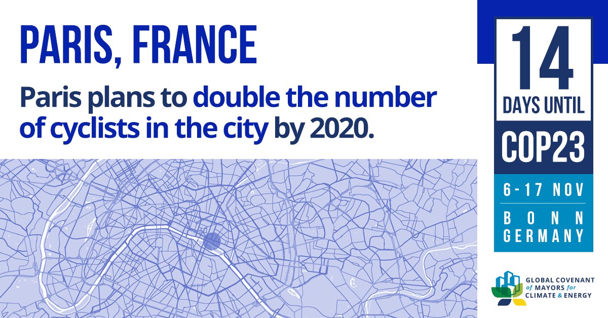 .@Paris is adding 200km of cycling trails this year, aiming to double the number of cyclists by 2020. #CountdowntoCOP #CityLabParispic.twitter.com/J0v3LdMeVF