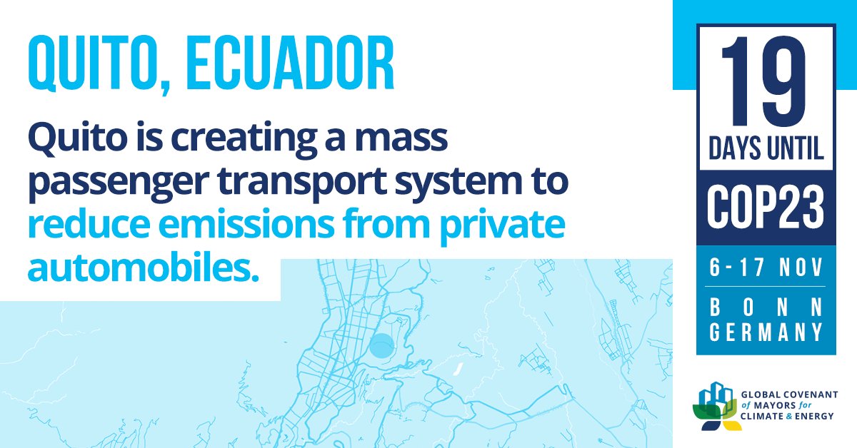 Quito is investing in a clean energy future by spending over $1 billion on an integrated mass transit system. #CountdowntoCOP #Habitat3Quitopic.twitter.com/u51JZOK8cp