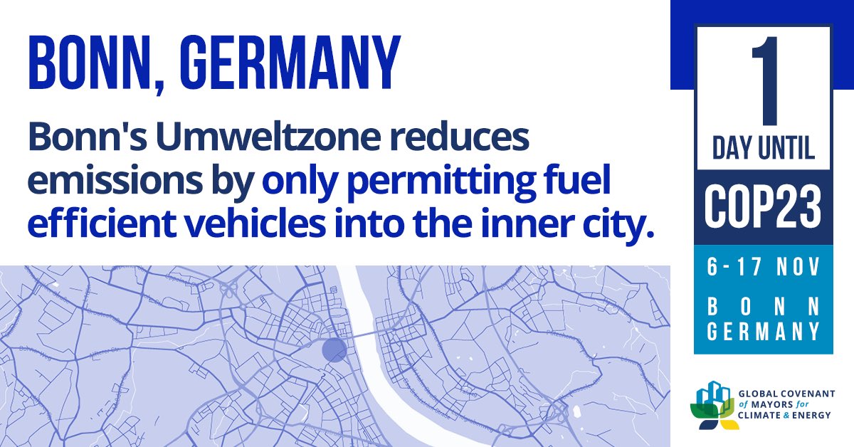 In Bonn's Umweltzone, only vehicles equipped with a valid green environment badge are allowed to enter the inner city. #CountdowntoCOPpic.twitter.com/8KJod6i9Cr