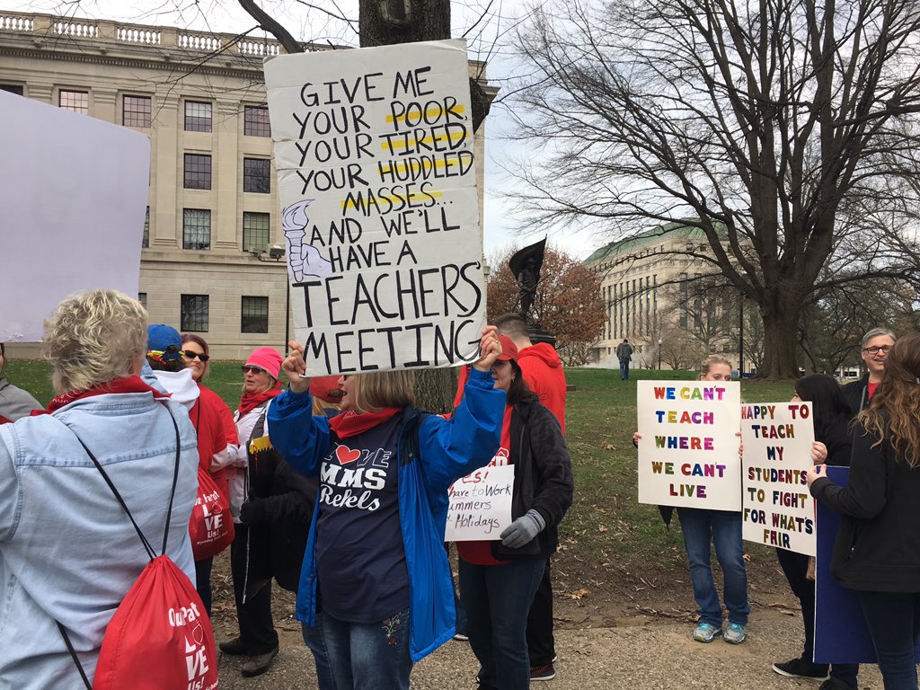 More and more teachers and supporters are turning out to argue for higher wages and benefits at the WV statehouse.pic.twitter.com/cUHvT8EUyt