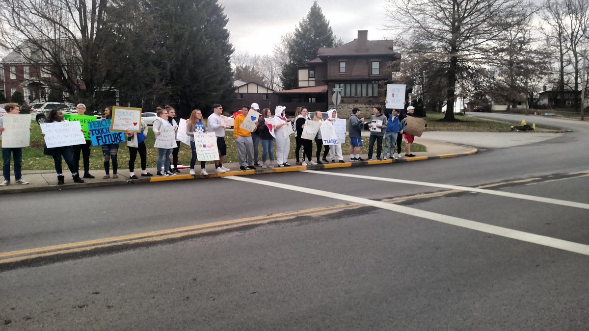 Students out in front of Fairmont Senior High School in solidarity with their teachers @WVMetroNews @WAJRNEWS @AJRNewsNetworkpic.twitter.com/bY6OWB8KI8
