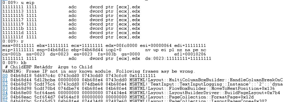 Sometimes a DEP violation is just a DEP violation... Even though the full stack is bananas. #0dayfailadaypic.twitter.com/oPY0LziwON