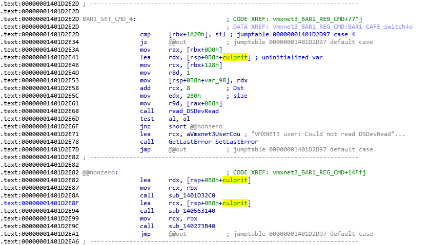 I have reverse-engineered @VMWare's patch for the vuln in VMWare ESXi that was exploited at @GeekPwn 2018 to take it down for the first time. It's an uninitialized stack variable usage RCE in the host-side code of vmxnet3 network adapter. Binary diff via Workstation 15.0.0/15.0.1pic.twitter.com/3JgMojFlbu