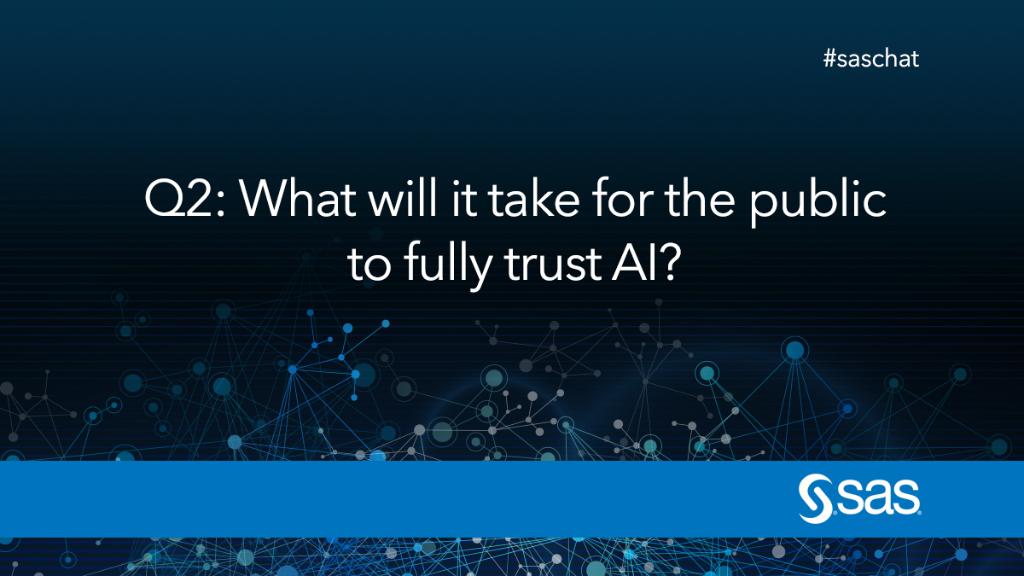 A2: Trust is earned and not usually automatically conferred. Customer-centered practices that are ethically informed will drive standards for trusting #AI #SASchat