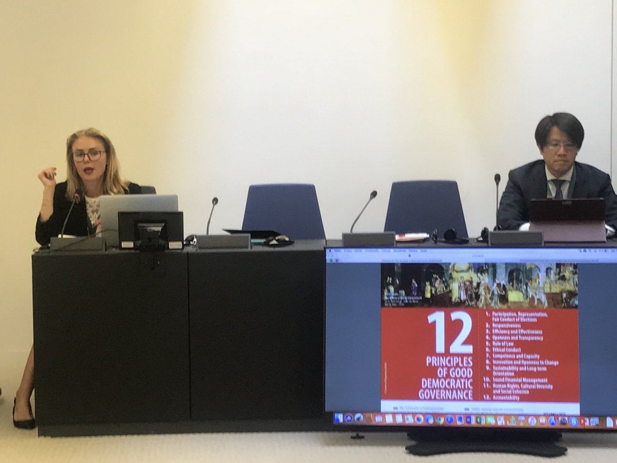 Alina Tatarenko, Centre of expertise for Local Government reform @CoE_GoodGov is presenting the 12 principles of good governance in #UCLGmeets @strasbourgpic.twitter.com/S70SfdNV7t