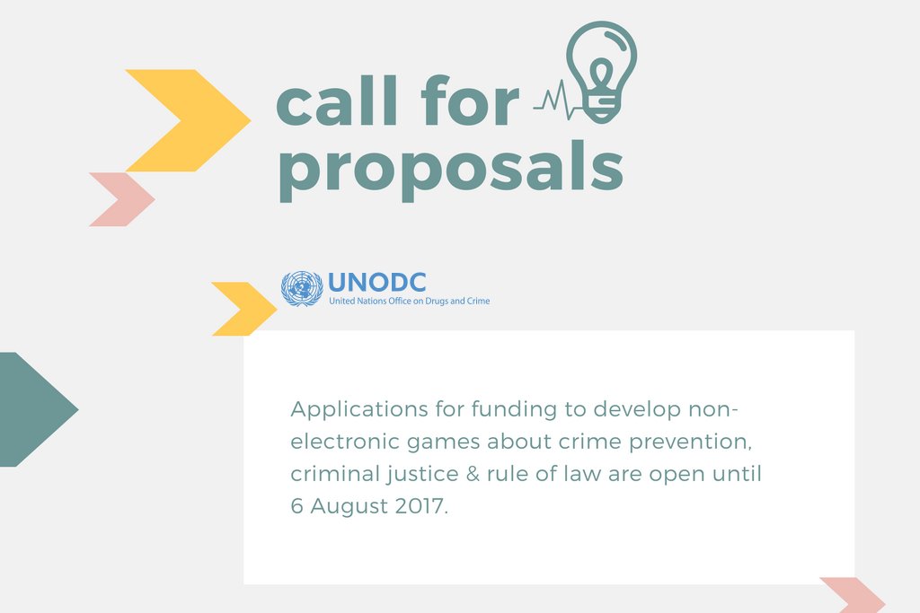 Applications for @UNODC #Education4Justice grant are open to CSOs interested in creating non-electronic games: http://bit.ly/2tU5rI8 pic.twitter.com/fYrqPk3Npp