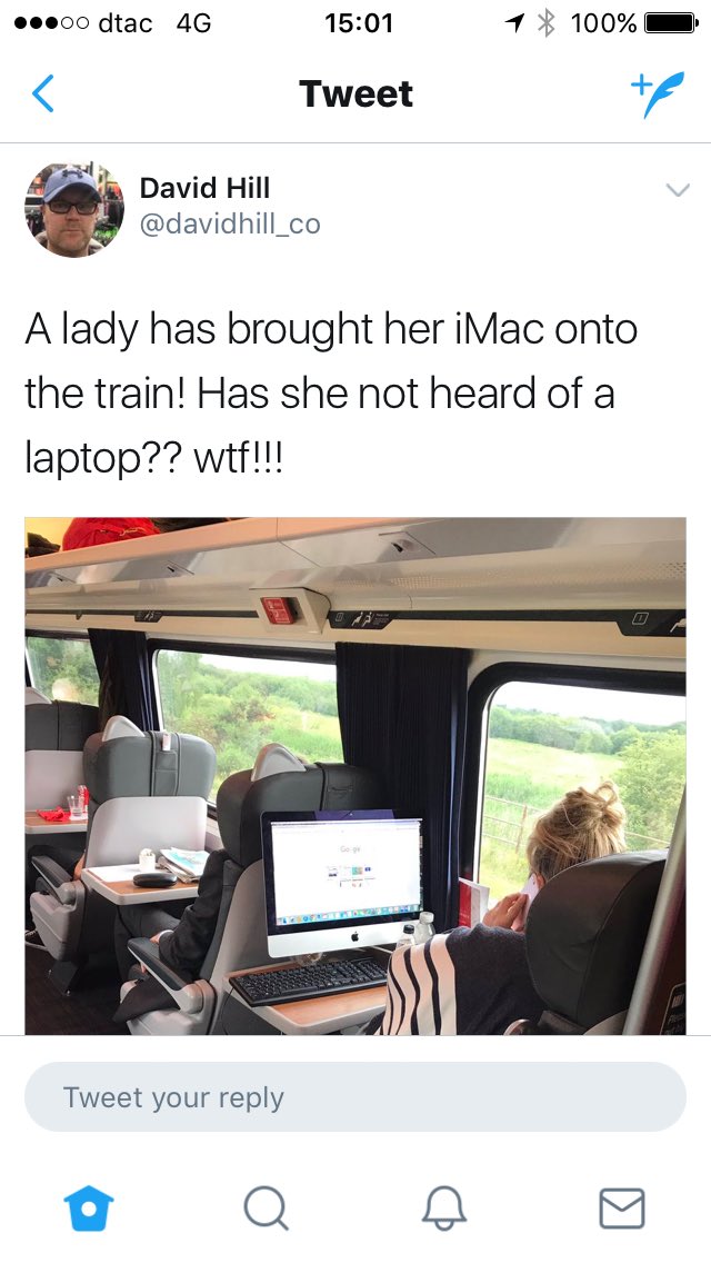 ผู้ชายคนหนึ่งถ่ายรูปผญ.ใช้ imac บนรถไฟไปลงทวิต ที่อยากให้ดูคือนักข่าวจากสำนักต่างๆมาขออนุญาตนำรูปไปใช้กับเจ้าของ สื่อไทยควรเอาเป็นตัวอย่างนะpic.twitter.com/jxER2mIw1n